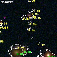 Object #15932 x,y = (1806, 5008) RA, Dec = (04:54:18.264, 02:56:52.44) = (73.57610, 2.94790) BPZ = 0.448 [0.103--3.514] type = 9.50 (SB3_B10 - SB2_B10) chisq2 = 0.06 ODDS = 0.16 z_cluster = 0.203