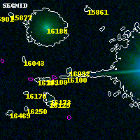 Object #16092 x,y = (6006, 4947) RA, Dec = (04:54:01.440, 02:56:48.84) = (73.50600, 2.94690) BPZ = 1.259 [0.154--2.333] type = 9.10 (SB2_B10 - SB3_B10) chisq2 = 0.11 ODDS = 0.15 z_cluster = 0.203