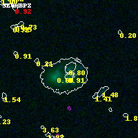 Object #16110 x,y = (3320, 4908) RA, Dec = (04:54:12.192, 02:56:46.68) = (73.55080, 2.94630) BPZ = 0.803 [0.729--2.033] type = 7.80 (SB1_B10 - Scd_B10) chisq2 = 0.00 ODDS = 0.27 z_cluster = 0.203