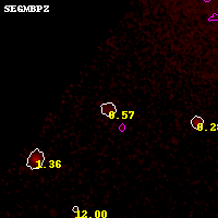 Object #16111 x,y = (230, 4919) RA, Dec = (04:54:24.576, 02:56:47.40) = (73.60240, 2.94650) BPZ = 0.567 [0.103--4.522] type = 10.00 (SB3_B10) chisq2 = 0.00 ODDS = 0.11 z_cluster = 0.203