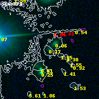 Object #16213 x,y = (6238, 4924) RA, Dec = (04:54:00.504, 02:56:47.40) = (73.50210, 2.94650) BPZ = 0.166 [0.054--2.725] type = 9.30 (SB2_B10 - SB3_B10) chisq2 = 0.02 ODDS = 0.18 z_cluster = 0.203