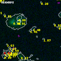 Object #16280 x,y = (3358, 4870) RA, Dec = (04:54:12.048, 02:56:44.16) = (73.55020, 2.94560) BPZ = 1.410 [0.219--2.847] type = 9.70 (SB3_B10 - SB2_B10) chisq2 = 0.36 ODDS = 0.10 z_cluster = 0.203