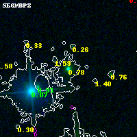 Object #16385 x,y = (4495, 4838) RA, Dec = (04:54:07.488, 02:56:42.36) = (73.53120, 2.94510) BPZ = 0.784 [0.745--1.127] type = 5.80 (Sbc_B10 - ES0_B10) chisq2 = 0.00 ODDS = 0.63 z_cluster = 0.203