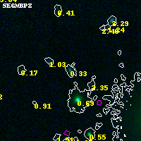 Object #16882 x,y = (3885, 4645) RA, Dec = (04:54:09.936, 02:56:30.84) = (73.54140, 2.94190) BPZ = 0.331 [0.239--3.240] type = 9.60 (SB3_B10 - SB2_B10) chisq2 = 0.01 ODDS = 0.33 z_cluster = 0.203