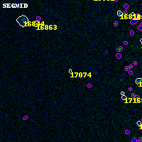 Object #17074 x,y = (7275, 4593) RA, Dec = (04:53:56.352, 02:56:27.60) = (73.48480, 2.94100) BPZ = 0.418 [0.162--4.192] type = 7.70 (SB1_B10 - Scd_B10) chisq2 = 0.29 ODDS = 0.05 z_cluster = 0.203