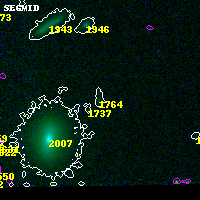 Object #1764 x,y = (1079, 1295) RA, Dec = (04:54:21.168, 02:53:09.96) = (73.58820, 2.88610) BPZ = 0.826 [0.524--2.475] type = 8.30 (SB1_B10 - SB2_B10) chisq2 = 0.00 ODDS = 0.16 z_cluster = 0.203