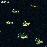 Object #1830 x,y = (7239, 1316) RA, Dec = (04:53:56.496, 02:53:11.04) = (73.48540, 2.88640) BPZ = 2.712 [0.584--2.991] type = 10.40 (SB3_B10 - SB11_A_0_l) chisq2 = 0.01 ODDS = 0.28 z_cluster = 0.203