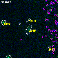 Object #1845 x,y = (7568, 1317) RA, Dec = (04:53:55.200, 02:53:11.04) = (73.48000, 2.88640) BPZ = 0.514 [0.047--2.602] type = 7.90 (SB1_B10 - Scd_B10) chisq2 = 0.00 ODDS = 0.41 z_cluster = 0.203