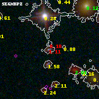 Object #1924 x,y = (5023, 1360) RA, Dec = (04:54:05.376, 02:53:13.56) = (73.52240, 2.88710) BPZ = 1.113 [1.076--1.767] type = 9.70 (SB3_B10 - SB2_B10) chisq2 = 1.01 ODDS = 0.67 z_cluster = 0.203