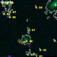 Object #1966 x,y = (3431, 1377) RA, Dec = (04:54:11.760, 02:53:14.64) = (73.54900, 2.88740) BPZ = 1.370 [0.150--2.601] type = 8.80 (SB2_B10 - SB1_B10) chisq2 = 0.05 ODDS = 0.12 z_cluster = 0.203