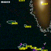 Object #2003 x,y = (4084, 1395) RA, Dec = (04:54:09.144, 02:53:15.72) = (73.53810, 2.88770) BPZ = 0.919 [0.317--10.136] type = 10.10 (SB3_B10 - SB11_A_0_l) chisq2 = 3.23 ODDS = 0.18 z_cluster = 0.203