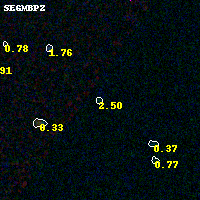 Object #2005 x,y = (6421, 1396) RA, Dec = (04:53:59.784, 02:53:15.72) = (73.49910, 2.88770) BPZ = 2.497 [0.143--3.267] type = 7.60 (SB1_B10 - Scd_B10) chisq2 = 0.01 ODDS = 0.12 z_cluster = 0.203