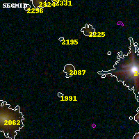 Object #2087 x,y = (4921, 1428) RA, Dec = (04:54:05.784, 02:53:17.88) = (73.52410, 2.88830) BPZ = 0.615 [0.440--0.777] type = 8.80 (SB2_B10 - SB1_B10) chisq2 = 0.41 ODDS = 0.49 z_cluster = 0.203