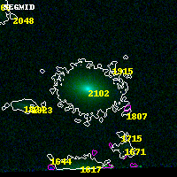 Object #2102 x,y = (2388, 1332) RA, Dec = (04:54:15.936, 02:53:12.12) = (73.56640, 2.88670) BPZ = 0.165 [0.119--0.217] type = 2.30 (Ell6_A_0 - Ell5_A_0) chisq2 = 0.02 ODDS = 0.95 z_cluster = 0.203