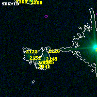 Object #2126 x,y = (6941, 1443) RA, Dec = (04:53:57.696, 02:53:18.60) = (73.49040, 2.88850) BPZ = 1.288 [0.190--2.438] type = 8.60 (SB2_B10 - SB1_B10) chisq2 = 0.00 ODDS = 0.13 z_cluster = 0.203
