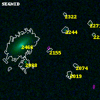 Object #2155 x,y = (3581, 1453) RA, Dec = (04:54:11.160, 02:53:19.32) = (73.54650, 2.88870) BPZ = 2.769 [0.362--3.154] type = 11.00 (SB11_A_0_l) chisq2 = 0.33 ODDS = 0.20 z_cluster = 0.203