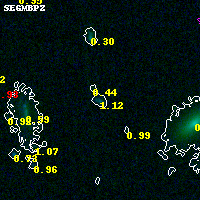 Object #2230 x,y = (3430, 1486) RA, Dec = (04:54:11.760, 02:53:21.12) = (73.54900, 2.88920) BPZ = 1.125 [0.113--1.627] type = 9.80 (SB3_B10 - SB2_B10) chisq2 = 0.03 ODDS = 0.22 z_cluster = 0.203