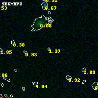 Object #2245 x,y = (2128, 1495) RA, Dec = (04:54:16.968, 02:53:21.84) = (73.57070, 2.88940) BPZ = 1.368 [0.192--3.100] type = 8.80 (SB2_B10 - SB1_B10) chisq2 = 0.42 ODDS = 0.10 z_cluster = 0.203