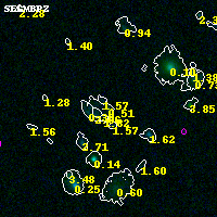 Object #2431 x,y = (1855, 1573) RA, Dec = (04:54:18.072, 02:53:26.52) = (73.57530, 2.89070) BPZ = 0.505 [0.244--2.505] type = 10.60 (SB11_A_0_l - SB3_B10) chisq2 = 0.00 ODDS = 0.09 z_cluster = 0.203