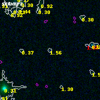 Object #2477 x,y = (6790, 1589) RA, Dec = (04:53:58.296, 02:53:27.60) = (73.49290, 2.89100) BPZ = 1.565 [1.043--2.600] type = 10.60 (SB11_A_0_l - SB3_B10) chisq2 = 0.26 ODDS = 0.16 z_cluster = 0.203
