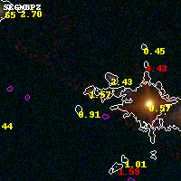 Object #2540 x,y = (3805, 1617) RA, Dec = (04:54:10.248, 02:53:29.04) = (73.54270, 2.89140) BPZ = 1.566 [1.361--2.280] type = 6.80 (Scd_B10 - Sbc_B10) chisq2 = 0.09 ODDS = 0.32 z_cluster = 0.203