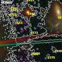 Object #2573 x,y = (6129, 1629) RA, Dec = (04:54:00.960, 02:53:29.76) = (73.50400, 2.89160) BPZ = 0.101 [0.078--2.470] type = 10.40 (SB3_B10 - SB11_A_0_l) chisq2 = 1.32 ODDS = 0.25 z_cluster = 0.203
