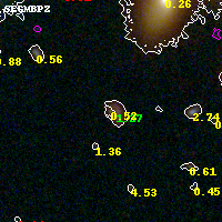 Object #2639 x,y = (4843, 1655) RA, Dec = (04:54:06.096, 02:53:31.20) = (73.52540, 2.89200) BPZ = 0.516 [0.038--0.922] type = 7.90 (SB1_B10 - Scd_B10) chisq2 = 0.12 ODDS = 0.26 z_cluster = 0.203