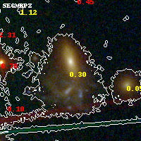 Object #2674 x,y = (6217, 1678) RA, Dec = (04:54:00.600, 02:53:32.64) = (73.50250, 2.89240) BPZ = 0.300 [0.047--0.363] type = 7.20 (Scd_B10 - SB1_B10) chisq2 = 0.02 ODDS = 0.91 z_cluster = 0.203