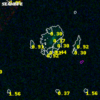 Object #2677 x,y = (6717, 1670) RA, Dec = (04:53:58.584, 02:53:32.28) = (73.49410, 2.89230) BPZ = 0.208 [0.098--2.938] type = 9.50 (SB3_B10 - SB2_B10) chisq2 = 0.02 ODDS = 0.07 z_cluster = 0.203