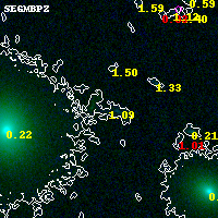 Object #2688 x,y = (3036, 1589) RA, Dec = (04:54:13.344, 02:53:27.60) = (73.55560, 2.89100) BPZ = 1.092 [0.671--1.798] type = 8.70 (SB2_B10 - SB1_B10) chisq2 = 0.00 ODDS = 0.19 z_cluster = 0.203