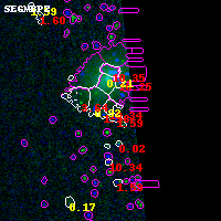 Object #2703 x,y = (7616, 1684) RA, Dec = (04:53:54.984, 02:53:33.00) = (73.47910, 2.89250) BPZ = 10.342 [0.909--10.355] type = 4.00 (Ell4_A_0) chisq2 = 900.00 ODDS = 0.69 z_cluster = 0.203