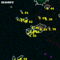 Object #2736 x,y = (3665, 1699) RA, Dec = (04:54:10.824, 02:53:34.08) = (73.54510, 2.89280) BPZ = 0.965 [0.597--1.932] type = 9.60 (SB3_B10 - SB2_B10) chisq2 = 0.34 ODDS = 0.25 z_cluster = 0.203