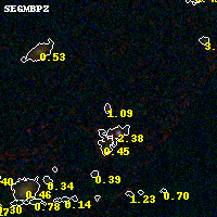 Object #2764 x,y = (6547, 1708) RA, Dec = (04:53:59.280, 02:53:34.44) = (73.49700, 2.89290) BPZ = 1.088 [0.587--1.811] type = 9.30 (SB2_B10 - SB3_B10) chisq2 = 0.39 ODDS = 0.39 z_cluster = 0.203