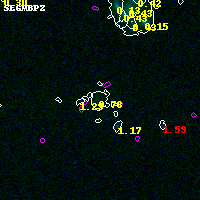 Object #2880 x,y = (1431, 1753) RA, Dec = (04:54:19.776, 02:53:37.32) = (73.58240, 2.89370) BPZ = 0.778 [0.607--2.151] type = 8.70 (SB2_B10 - SB1_B10) chisq2 = 0.01 ODDS = 0.16 z_cluster = 0.203