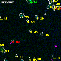 Object #2985 x,y = (2542, 1796) RA, Dec = (04:54:15.312, 02:53:39.84) = (73.56380, 2.89440) BPZ = 0.447 [0.137--3.488] type = 8.80 (SB2_B10 - SB1_B10) chisq2 = 0.00 ODDS = 0.06 z_cluster = 0.203