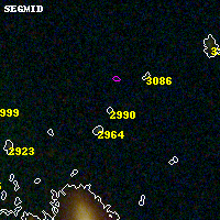 Object #2990 x,y = (6239, 1799) RA, Dec = (04:54:00.504, 02:53:40.20) = (73.50210, 2.89450) BPZ = 0.336 [0.127--3.498] type = 11.00 (SB11_A_0_l) chisq2 = 0.42 ODDS = 0.08 z_cluster = 0.203