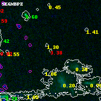 Object #3018 x,y = (991, 1808) RA, Dec = (04:54:21.528, 02:53:40.56) = (73.58970, 2.89460) BPZ = 3.381 [0.294--3.706] type = 11.00 (SB11_A_0_l) chisq2 = 4.33 ODDS = 0.32 z_cluster = 0.203
