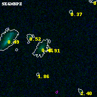 Object #3186 x,y = (6967, 1864) RA, Dec = (04:53:57.600, 02:53:43.80) = (73.49000, 2.89550) BPZ = 0.914 [0.244--2.989] type = 8.80 (SB2_B10 - SB1_B10) chisq2 = 0.05 ODDS = 0.12 z_cluster = 0.203