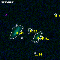 Object #3248 x,y = (6928, 1888) RA, Dec = (04:53:57.744, 02:53:45.24) = (73.49060, 2.89590) BPZ = 0.524 [0.104--2.611] type = 8.90 (SB2_B10 - SB1_B10) chisq2 = 0.01 ODDS = 0.19 z_cluster = 0.203