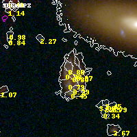 Object #3268 x,y = (4058, 1894) RA, Dec = (04:54:09.240, 02:53:45.60) = (73.53850, 2.89600) BPZ = 0.798 [0.750--0.887] type = 8.40 (SB1_B10 - SB2_B10) chisq2 = 0.13 ODDS = 0.93 z_cluster = 0.203