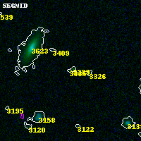 Object #3335 x,y = (2431, 1920) RA, Dec = (04:54:15.768, 02:53:47.40) = (73.56570, 2.89650) BPZ = 0.238 [0.116--3.877] type = 6.70 (Scd_B10 - Sbc_B10) chisq2 = 0.00 ODDS = 0.06 z_cluster = 0.203