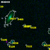 Object #3339 x,y = (2436, 1922) RA, Dec = (04:54:15.744, 02:53:47.40) = (73.56560, 2.89650) BPZ = 4.024 [0.229--4.380] type = 8.70 (SB2_B10 - SB1_B10) chisq2 = 0.02 ODDS = 0.47 z_cluster = 0.203