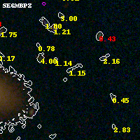 Object #3480 x,y = (4323, 1980) RA, Dec = (04:54:08.184, 02:53:51.00) = (73.53410, 2.89750) BPZ = 1.149 [1.143--3.011] type = 10.40 (SB3_B10 - SB11_A_0_l) chisq2 = 0.52 ODDS = 0.10 z_cluster = 0.203