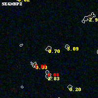 Object #3568 x,y = (6125, 2012) RA, Dec = (04:54:00.960, 02:53:52.80) = (73.50400, 2.89800) BPZ = 0.696 [0.407--0.908] type = 9.00 (SB2_B10) chisq2 = 0.19 ODDS = 0.38 z_cluster = 0.203
