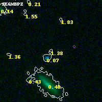 Object #3752 x,y = (1103, 2074) RA, Dec = (04:54:21.072, 02:53:56.40) = (73.58780, 2.89900) BPZ = 1.378 [0.172--3.259] type = 8.50 (SB2_B10 - SB1_B10) chisq2 = 0.02 ODDS = 0.09 z_cluster = 0.203