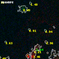 Object #3801 x,y = (3968, 2092) RA, Dec = (04:54:09.600, 02:53:57.48) = (73.54000, 2.89930) BPZ = 0.907 [0.104--1.162] type = 10.50 (SB11_A_0_l - SB3_B10) chisq2 = 0.40 ODDS = 0.26 z_cluster = 0.203