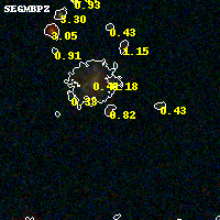 Object #3852 x,y = (6063, 2117) RA, Dec = (04:54:01.224, 02:53:59.28) = (73.50510, 2.89980) BPZ = 0.816 [0.431--1.073] type = 8.90 (SB2_B10 - SB1_B10) chisq2 = 0.41 ODDS = 0.37 z_cluster = 0.203