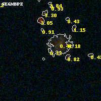 Object #3885 x,y = (6028, 2129) RA, Dec = (04:54:01.344, 02:54:0) = (73.50560, 2.90000) BPZ = 0.332 [0.094--3.571] type = 10.70 (SB11_A_0_l - SB3_B10) chisq2 = 0.50 ODDS = 0.26 z_cluster = 0.203