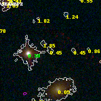 Object #4137 x,y = (6425, 2231) RA, Dec = (04:53:59.760, 02:54:06.12) = (73.49900, 2.90170) BPZ = 0.448 [0.186--4.149] type = 9.80 (SB3_B10 - SB2_B10) chisq2 = 0.73 ODDS = 0.54 z_cluster = 0.203