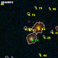 Object #4220 x,y = (4383, 2261) RA, Dec = (04:54:07.944, 02:54:07.92) = (73.53310, 2.90220) BPZ = 0.306 [0.136--4.204] type = 3.10 (Ell5_A_0 - Ell4_A_0) chisq2 = 0.26 ODDS = 0.21 z_cluster = 0.203